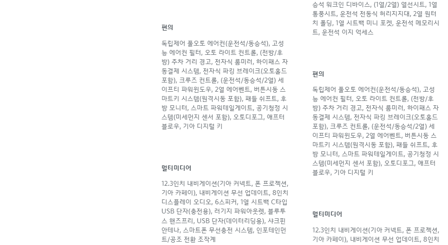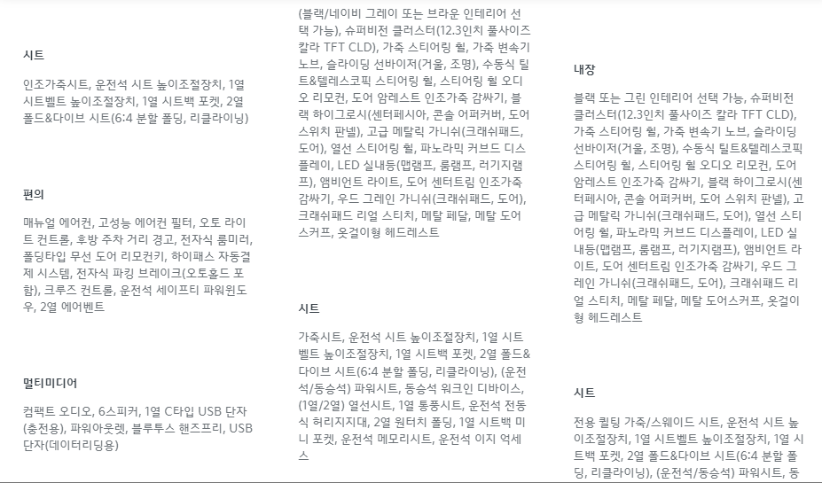 | 1.6 가솔린 터보 | 4WD DCT | 27,350,000 | 31,450,000 (TOP1) | 33,380,000 | 34,810,000 |