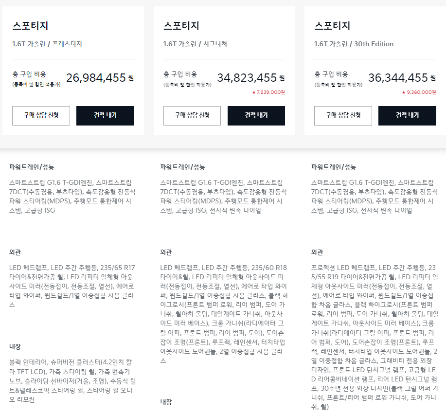 스포티지 트림별 옵션 차이