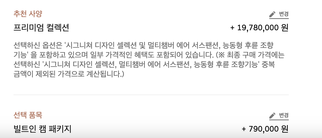 제네시스 G90 가격표 옵션 - 필수 선택사양