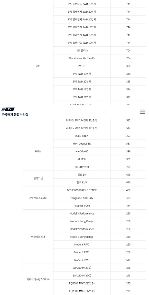 이외에도 벤츠 EQA, EQB와 BMW iX3, i4의 차량도 포함됩니다.