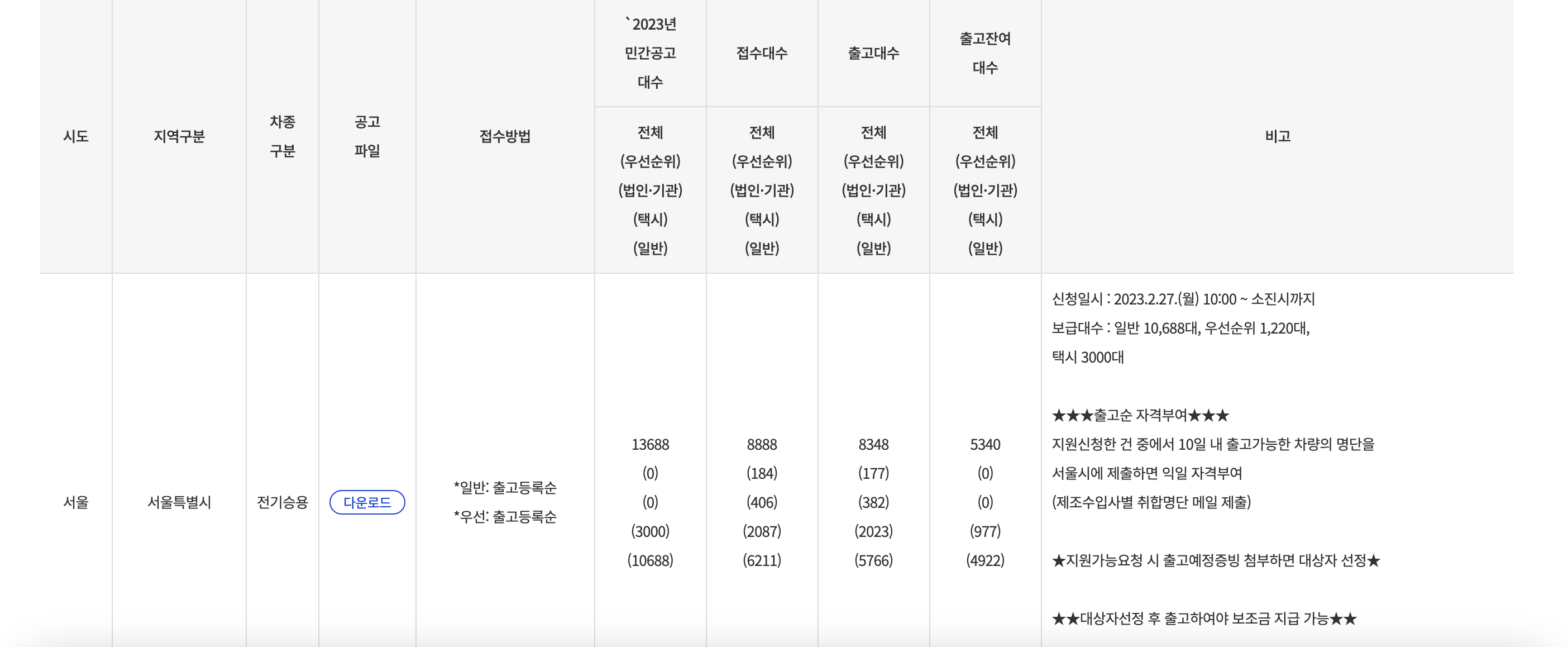 전기차 보조금의 상세 내용 및 잔여 출고 대수 현황에 대해서는 무공해차 통합 누리집에서 확인하실 수 있습니다.