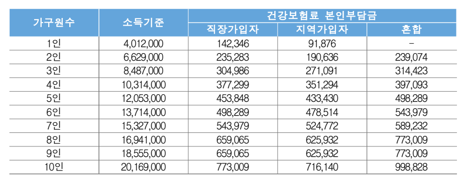 - 외벌이 4인 가정의 건강보험료 본인 부담금을 확인합니다.