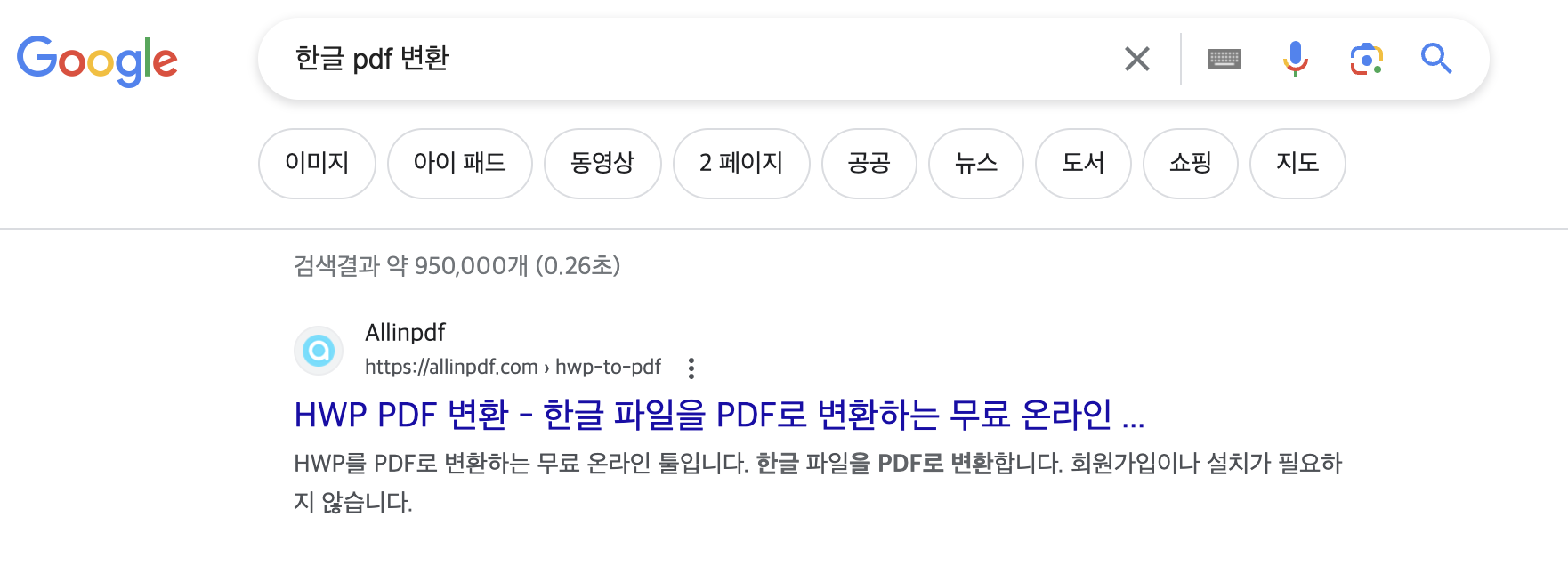 먼저 구글 검색창에 [한글 pdf 변환] 을 검색합니다.