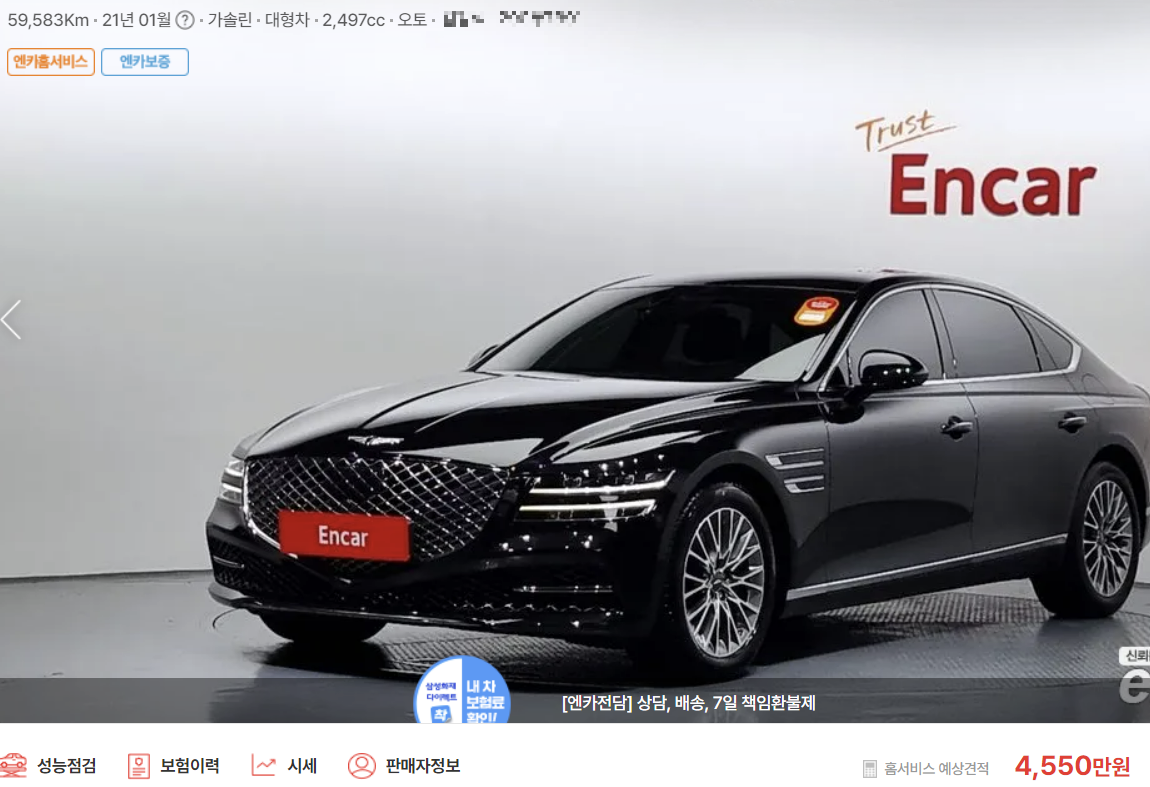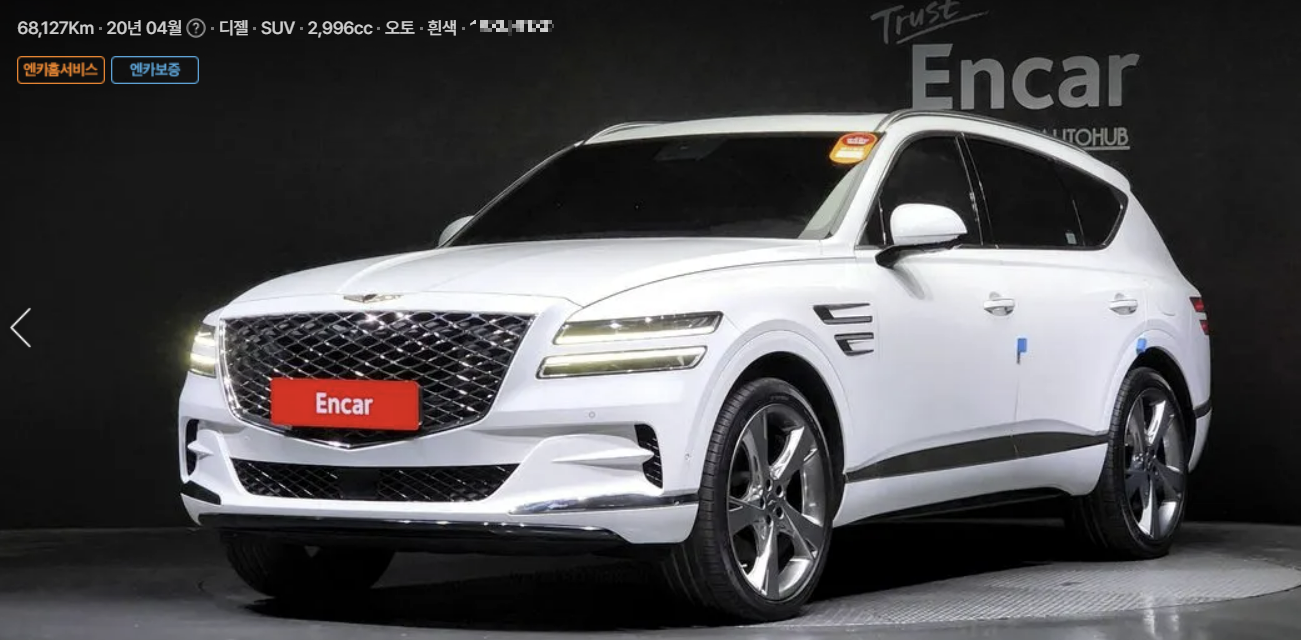 1. GV80/ 6590만 원 / 20년 4월/ 6만 키로