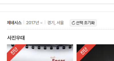저는 아래 사진과 같이 제네시스, 2017년 이후 차량, 경기, 서울을 선택했습니다.